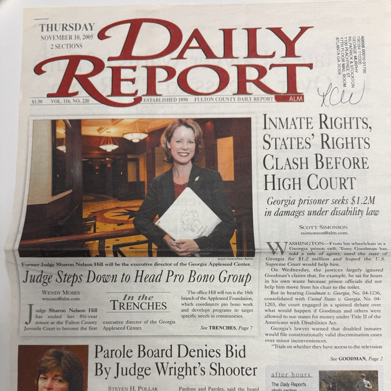 Georgia Appleseed launches under the guidance of Founding Board Chair, Steve Clay and Executive Director Sharon Hill. Kilpatrick Townsend & Stockton donates in-kind space for the offices.