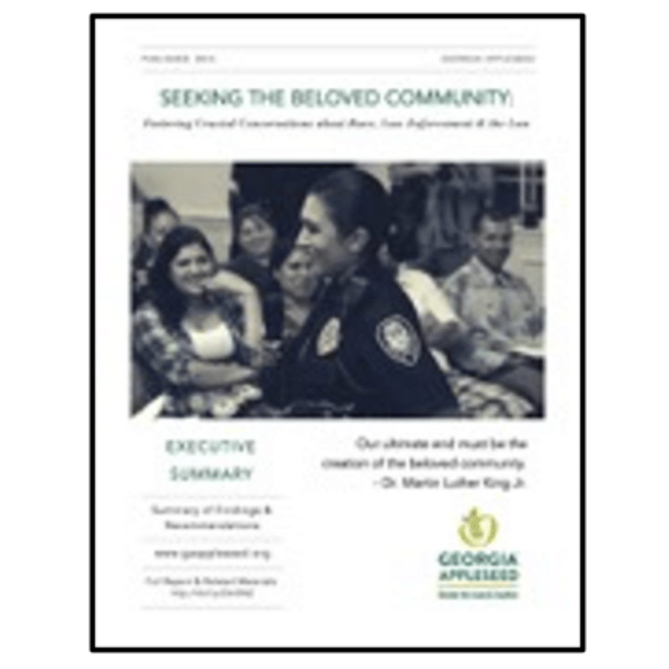 Rebuilds police-community trust statewide in response to the death of Michael Brown in Ferguson, Missouri and a request by a Georgia mayor for our help to prevent similar police-citizen encounters. A wide-reaching, data-driven effort ensues, inviting more than 500 Georgians to share experiences and ideas.